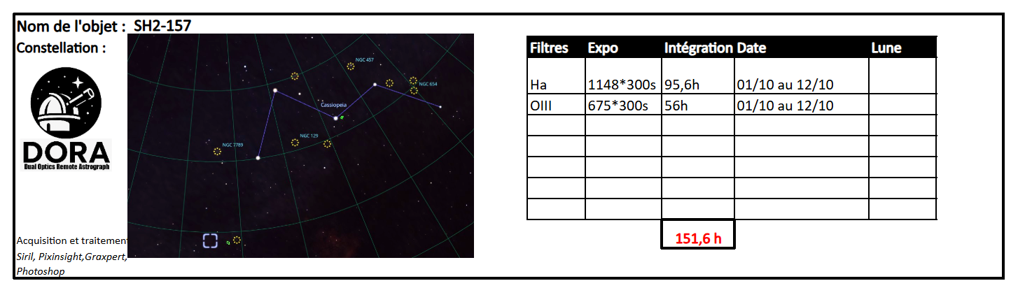 - DORA : SH2-157 Lobster Claw nebula (Nébuleuse de la pince du homard)