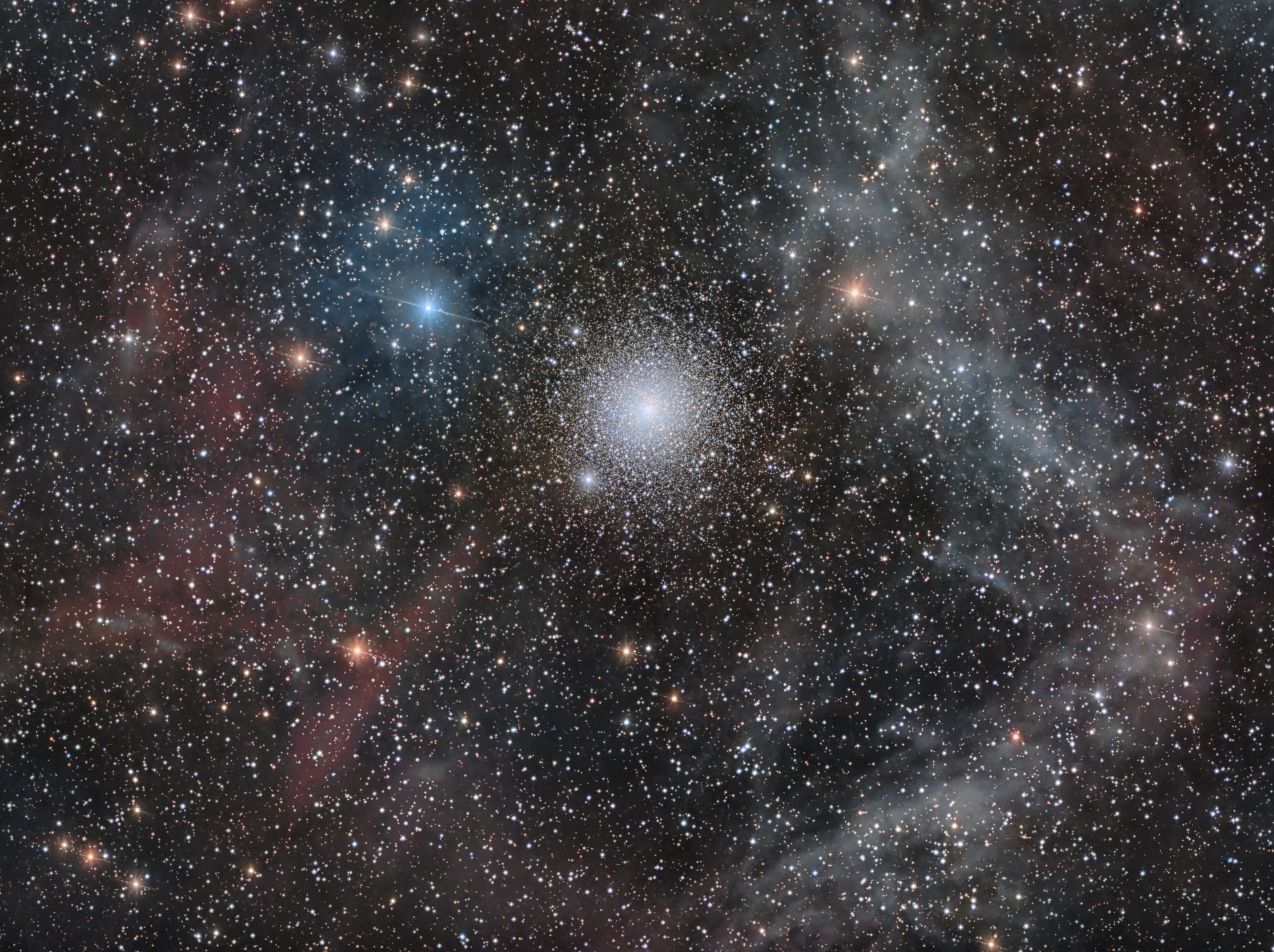 Quand on prend le temps d’intégrer suffisamment longtemps (7h) , même des objets classiques comme l’amas globulaire M15 révèlent des IFN dans cette forme en L Mais pas seulement, puisque du signal Ha vient aussi apparaitre comme d'ailleurs cette nébuleuse à réflexion autour de l'étoile bleue HD204862 La richesse de l'amas globulaire est spectaculaire et figure parmi les plus denses du ciel Intégration totale: 7h (210 × 120") Equipement: - Télescope/Lunette: Celestron C14 - Caméra: ZWO ASI2600MC Pro - Monture: Astro-Physics 1200GTO - Filtre: Antlia Quad Band Anti-Light Pollution Filter 2" Mounted LP 2" - Accessoires: Celestron Dew Heater Ring 14", Celestron Focus Motor, PrimaLuceLab EAGLE2, Pulsar Observatories Pulsar 2.7m Short Height Dome, Starizona HyperStar 14 v4 (HS4-C14) - Logiciel: Adobe Photoshop, Pleiades Astrophoto PixInsight, Russell Croman Astrophotography BlurXTerminator, Russell Croman Astrophotography NoiseXTerminator, Russell Croman Astrophotography StarShrink, Russell Croman Astrophotography StarXTerminator, Stefan Berg Nighttime Imaging 'N' Astronomy (N.I.N.A. / NINA) Pour plus d'informations, visitez AstroBin: https://app.astrobin.com/i/7hcm4j et si vous aimez, n'oubliez pas de liker 😇